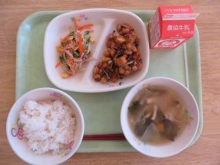 白ごはん 大豆のごまがらめ もやしのツナ和え みそ汁 牛乳