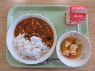 夏野菜のドライカレー 牛乳 フルーツポンチ