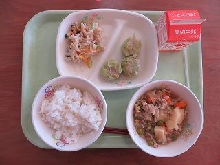 白ごはん ジャンボチューマイ 切干大根の甘酢和え 肉じゃが 牛乳