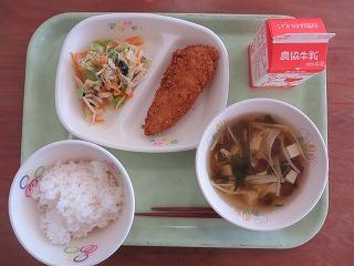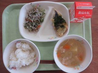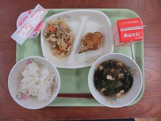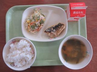 白ごはん 牛乳 サバのカレー揚げ 切干大根のサラダ じゃがいもとわかめのみそ汁