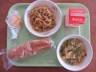 コッペパン 牛乳 焼きそば かきたまスープ フローズン黄桃