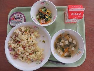 五目チャーハン 牛乳 五目ナムル ワンタンスープ