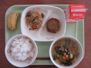白ごはん 牛乳 いわしハンバーグ チャプチェ みそ汁 バナナ