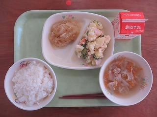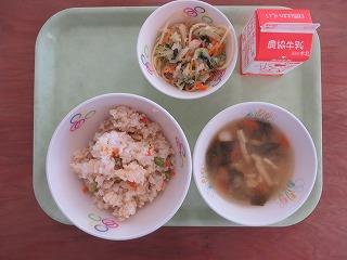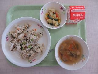 シーチキンご飯 牛乳 中華スープ じゃがいものごまあえ