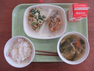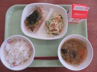 白ごはん 牛乳 サバの竜田揚げ 小松菜のごまあえ みそ汁