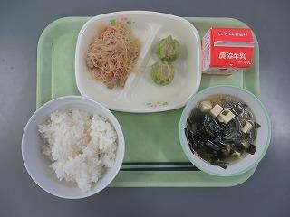 白ごはん 牛乳 枝豆シューマイ 春雨の中華炒め 中華スープ