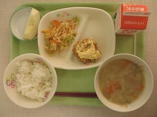 白ごはん 魚のチーズ揚げ もやしのごま酢和え のっぺい汁 牛乳