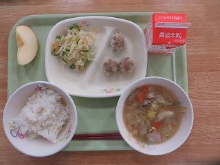 白ごはん シューマイ はりはり漬け けんちん汁 りんご 牛乳