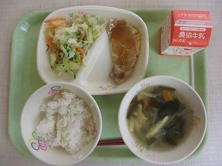白ごはん 鶏肉の照り焼き こんにゃくサラダ 沢煮わん 牛乳
