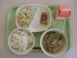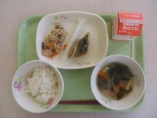白ごはん 魚のカレー揚げ 切干大根煮 みそ汁 牛乳