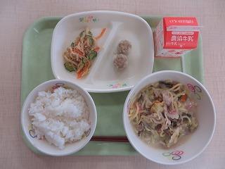 白ごはん シューマイ もやしのナムル 長崎ちゃんぽん 牛乳