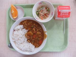 ビーンズカレー カミカミサラダ オレンジ 牛乳
