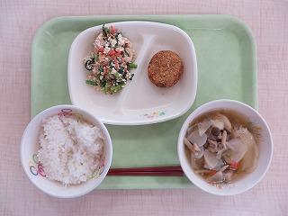 白ごはん イカメンチ 白和え せんべい汁 牛乳
