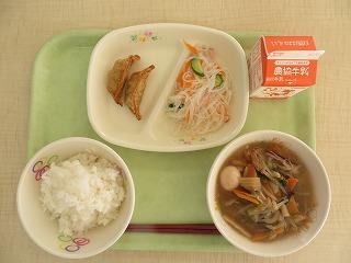 白ごはん 揚げぎょうざ バンサンスー 八宝菜 牛乳