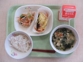 白ごはん 厚焼き卵 ごまネーズサラダ みそ汁 牛乳