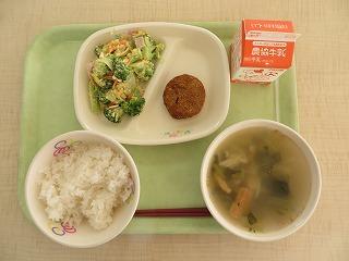 白ごはん メンチカツ ブロッコリーのタルタルサラダ みそ汁 牛乳