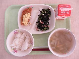 白ごはん 鶏肉の竜田揚げ 青菜のごまあえ みそ汁 牛乳