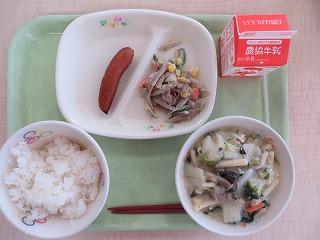 白ごはん ボイルウインナー ごぼうサラダ 白菜のクリーム煮 牛乳