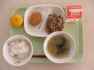 白ごはん 鮭キャベツフライ きんぴらごぼう みそ汁 牛乳