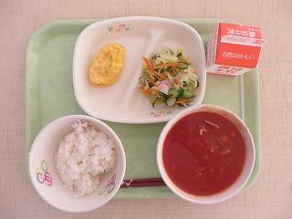 2022年10月20日 13時16分白ごはん オムレツ コーンサラダ ポークビーンズ 牛乳