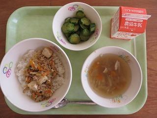 マーボーどん きゅうりのピリ辛 中華スープ 牛乳
