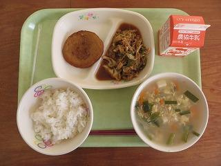 白ごはん 三味焼き ホイコーロー コーンかきたまスープ 牛乳
