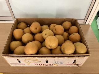 地域の方からたくさん梨をいただいたので、今日の給食には梨がついています。