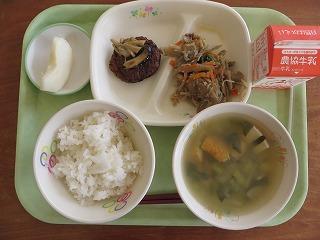 白ごはん ハンバーグきのこソース 金平ごぼう みそ汁 なし 牛乳