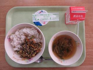 白ごはん 鶏肉の胡麻照り焼き じゃがいものきんぴら みそ汁 牛乳