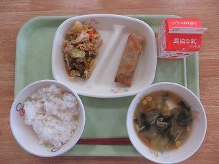 白ごはん 春巻 ホイコーロー 荷風コーンスープ 牛乳