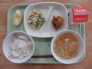 白ごはん タンドリーチキン シーザーサラダ コンソメジュリアン りんご 牛乳