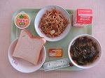 食パン ジャム 焼きそば ワンタンスープ かぼちゃプリン 牛乳