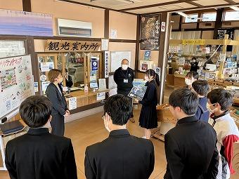 1月に9年生が制作したEマウンテンバイクツアーのPRポスターを道の駅すずなりに配布しに行きました。卒業式ぶりに9年生が顔を揃え、最後の活動となりました。代表で篠川がポスターの紹介をして、すずなりの方にお願いの挨拶を行いました。ポスターは快く受け取っていただき、これからすずなりにも掲示されることになります。
