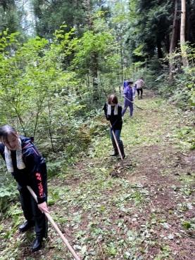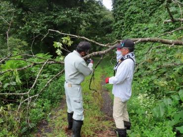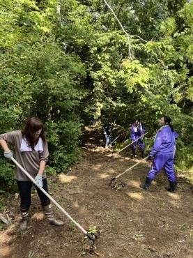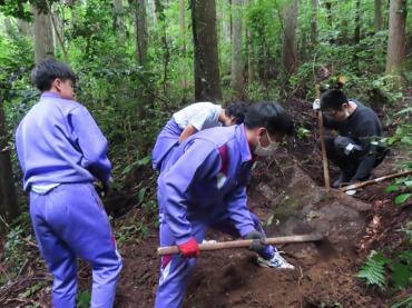 今回は台風の後ということで、道の状況が心配されましたが大きな影響もなくいつも通りの作業を行うことができました。また、道の埋まっている石の撤去にも挑戦してみました。道具が壊れるハプニングもありましたが、生徒たちは一生懸命、石起こしや倒木の撤去などに取り組んでいました。