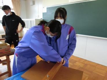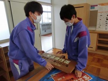 いよいよ看板が完成しました。最後はボルトを使って看板と支柱を組み立てました。2人1組で協力をしながら、気持ちを込めて作業を行っていました。10月29日(土)には空海伝説実行委員会の方やプライム128jrの方々と看板を設置しに行く予定です。