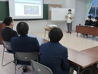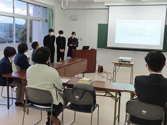 12月14日(水) 9年生は,飯田高校生を招いて,今年度整備した修行道(法住寺から曽の坊の滝)の活用方法について高校生からアドバイスをもらいました。最初に今年度取り組んだ修行道の整備活動について報告し,その後,人が利用してもらえるための方策について,現在考えているアイディアを発表しました。また,珠洲でのeマウンテンバイク活用状況や今後の展望について長岡さんからお話を聞き,今後の取組について意見交換しました。