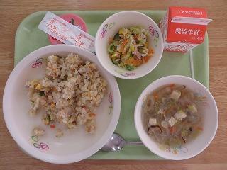 チャーハン サラダ 中華スープ ごまプリン 牛乳