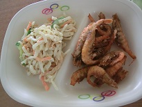 いかくんサラダ   → さきいか入り。かむ回数UP を意識した献立になっています!
