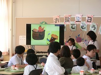 給食の前に、小学校では保健委員が読み聞かせをしました。