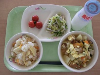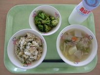 今日は、珠洲市で収穫された「わらび」入りの山菜おこわの給食でした!