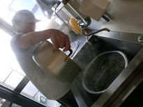 わらびは生のものを前日から調理員さんが下処理をしてくれました。 (下処理の様子)