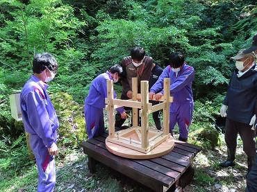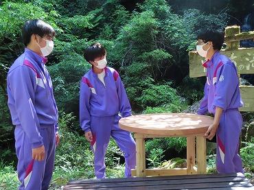 5月23日(月)に昨年製作テーブルと先輩が制作したベンチを補修し,曽の坊の滝に設置をしました。その後、空海伝説活用実行員会の垣内さんと民山さんにかつて使われていた、曽の坊の滝から法住寺に繋がる道を案内してもらいました。最初は恐る恐る山道を進んでいた9年生でしたが、途中からは元気いっぱい、戻り道では楽しそうに歓声も聞こえていました。
