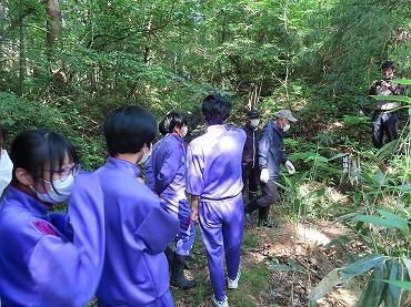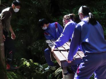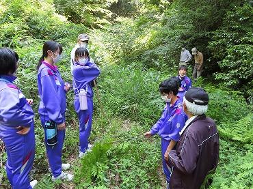 空海伝説活用実行委員会の方々に案内をしていただきました。生徒は最初、恐る恐る道を歩いていましたが、気づけば先頭を歩きどんどん先に進んで楽しんでいました。この古道復活のために自分たちでできそうなことは、除草や木をどかすことや地元の人達と協力して橋をかけたり、目印となる物を作っていくことなどの意見が挙がっていました。今後は古道復活見向けて、取り組んで行く予定です。