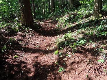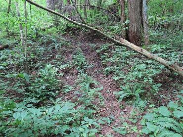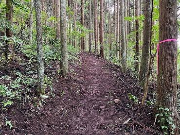 以前の道の探索をした頃に比べて、草や竹が生い茂っていたり、蒸し暑かったりして作業は大変でしたがなんとか道を拓くことができました。今回の作業では約3分の1ほど進みました。秋の開通を目指してあと何回か除草作業を進めて行きたいと思います。