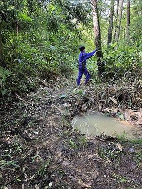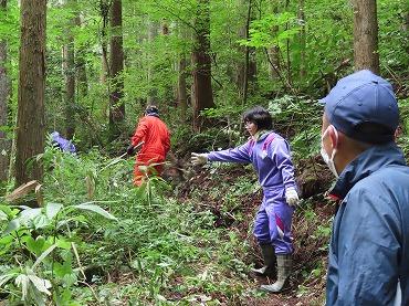 曽の坊の滝では,事前に曽の坊の滝への道を拓いたプライム128の田崎さんから聞いたことを生かしながら清掃活動に取り組んでいました。