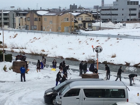 1月16日(火)午後、校門周辺を通行しやすくするために除雪を行いました。