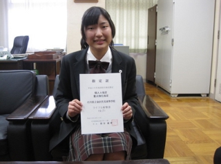 4月19日、本校3年平田しおりさんが、今年度の県高校生強化指定選手(ライフル射撃競技)に選ばれ、校長先生に報告しました。