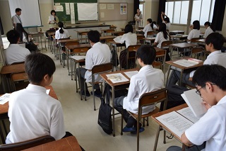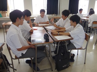 7月5日(金) の放課後、図書館講座『ビブリオバトルをやってみよう!』が開催されました。石川県立図書館の黒崎修司さん・松尾萌咲さんを講師にお招きし、生徒17名が参加しました。