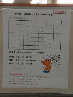 本校では、6・9・11月の年3回、”時間を守る意識の再確認”のため、『遅刻ゼロキャンペーン』を行っています。