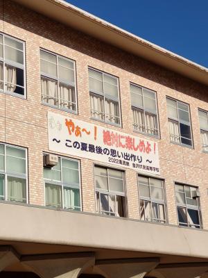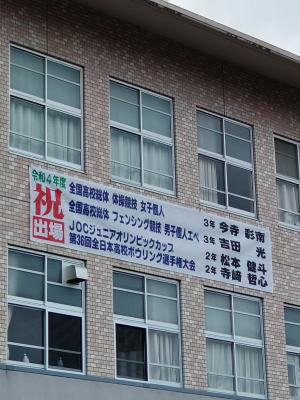 学校正面の壁面に大きな垂れ幕が登場しました。